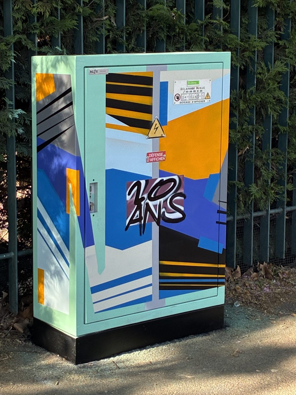 comme si on avait collé une affiche publicitaire sur ce bloc électrique. "