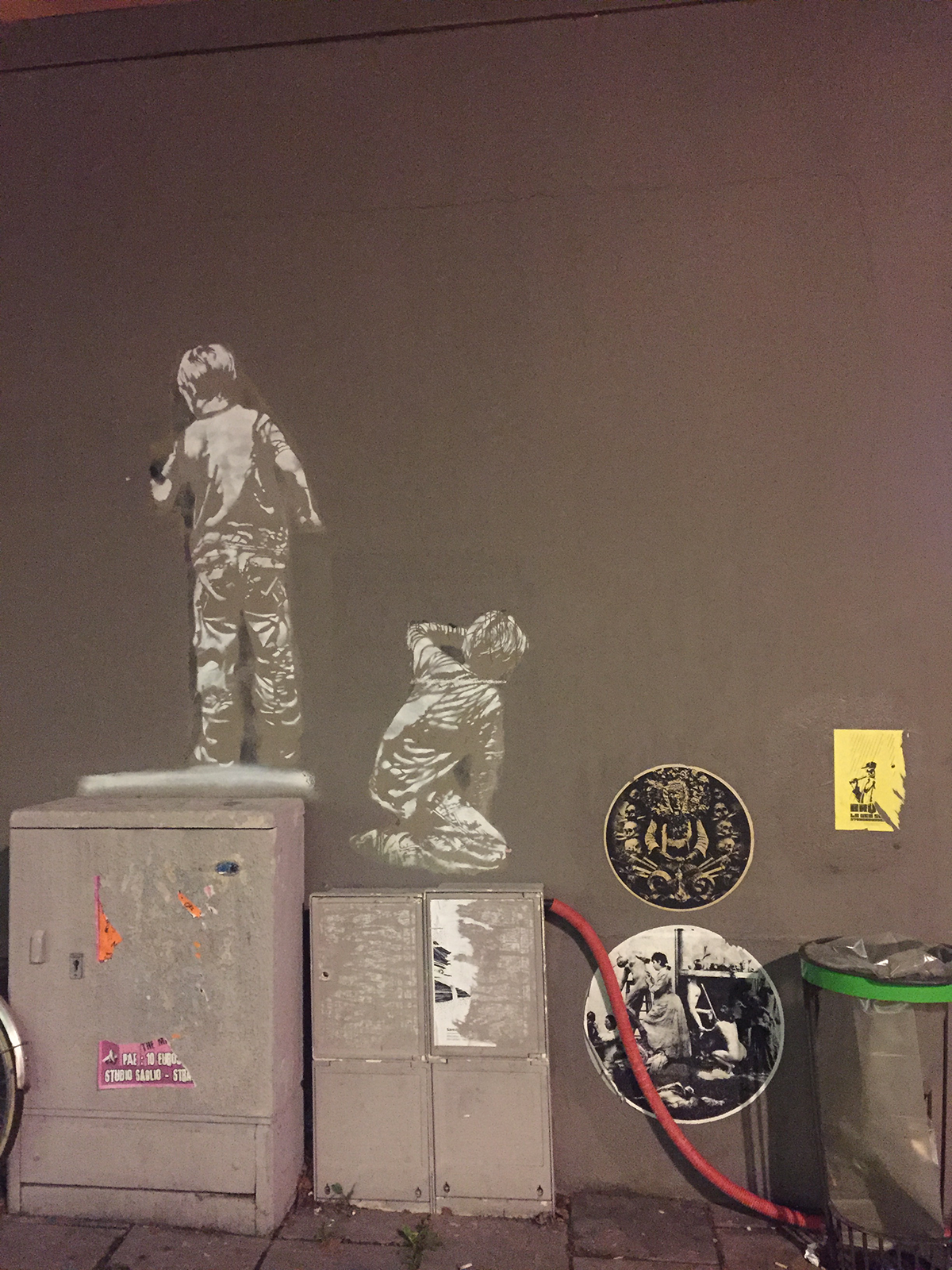 Collage réalisé par Edward Von Longūs (le Banksy estonien) sur la place des Meuniers de Strasbourg.
