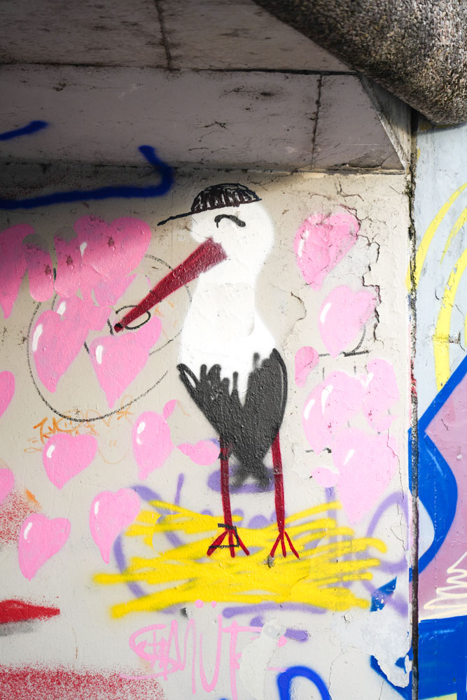 Un peu rhabillée pour l'hiver cette cigogne se trouve dans le tunnel au passage du Petit-Heyritz