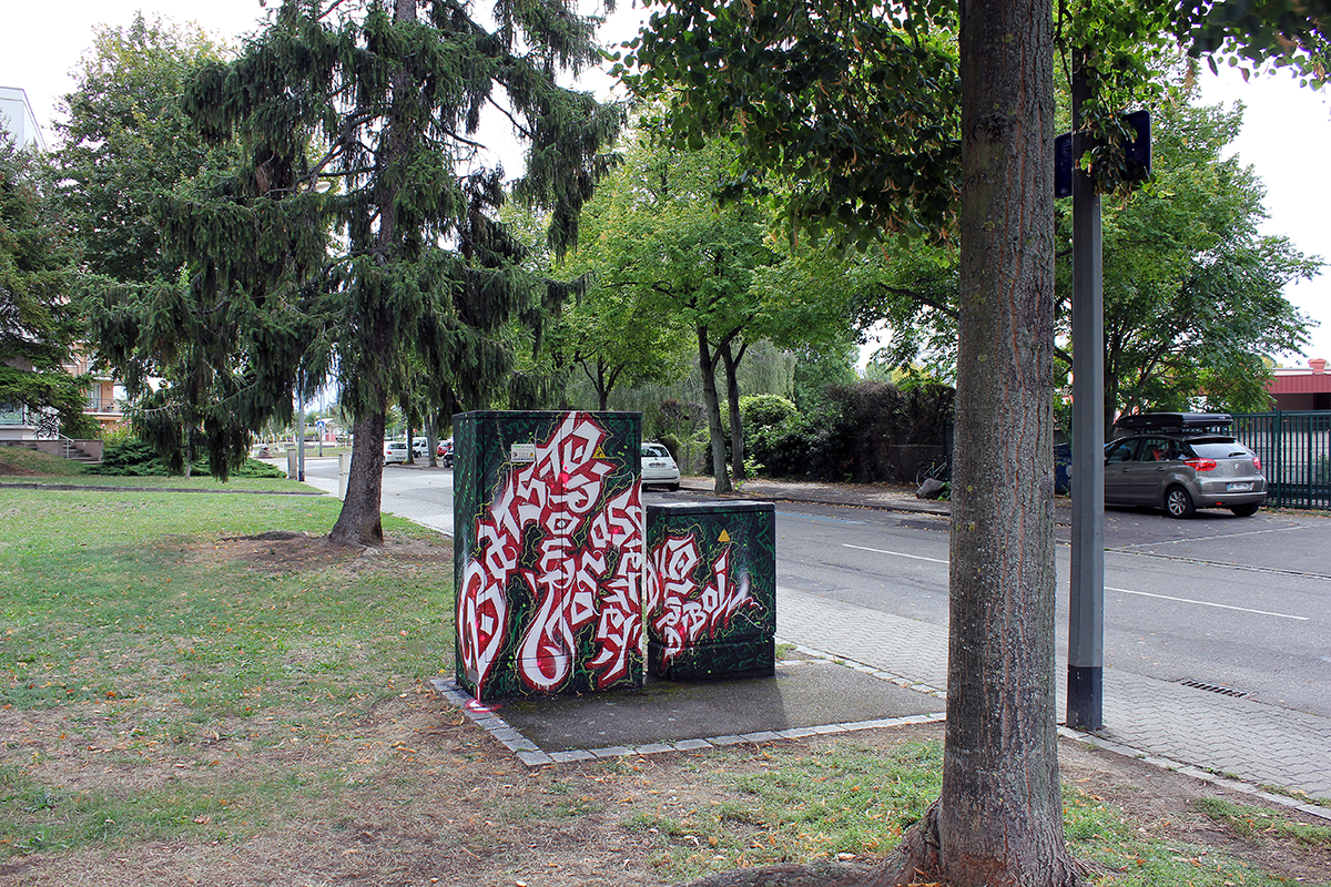 Oeuvre réalisée par Le Studiographe dans le cadre de la programmation Hors les Murs de COLORS Urban Art Festival powered by Socomec et financée par la Ville de Schiltigheim.