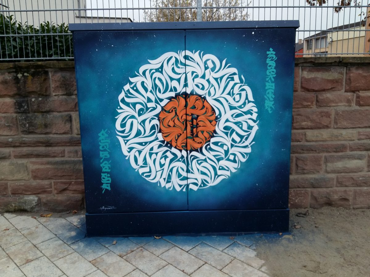 Une calligraphie contemporaine est inspirée du style gothique Fraktur avec des fausses lettres . Il s'agit d'un Calligraffiti qui représente un alphabet inventé et parfois avec une écriture verticale , qui ne cherche pas la lisibilité mais la plasticité calligraphique.