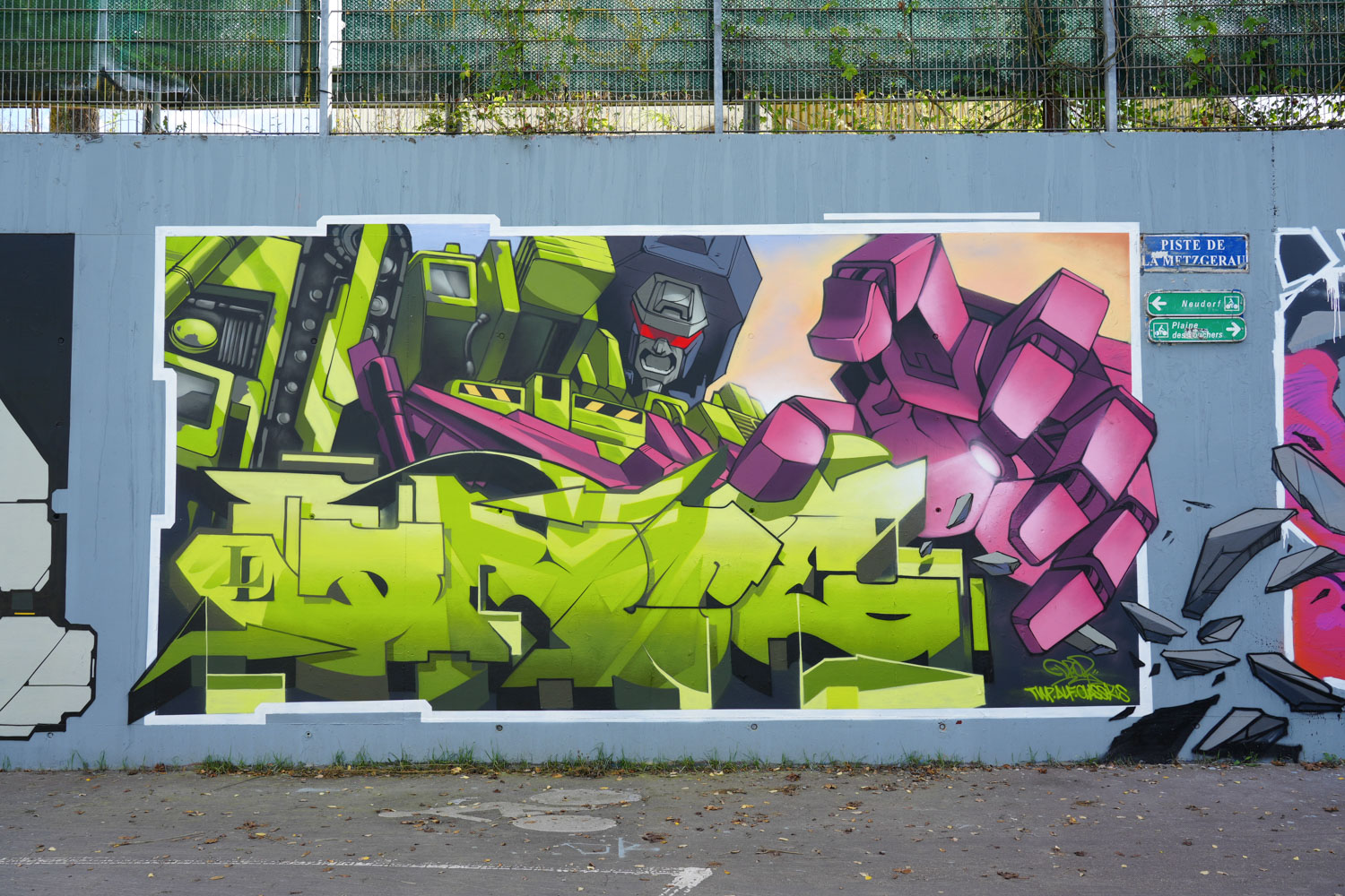 Mur réalisé lors d'une jam organisée en septembre 2023 par le collectif Downtown rue de la Kaltau sur le thème des Transformers
