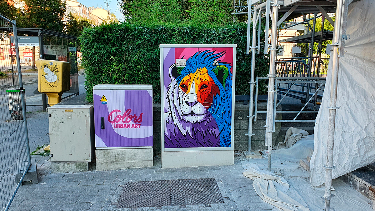 Oeuvre réalisée par Noise dans le cadre du "Hors les Murs" "Jungle Urbaine"pour la Strasbourg Aime Ses Etudiants et COLORS Urban Art Festival 2021 powered by Socomec.
