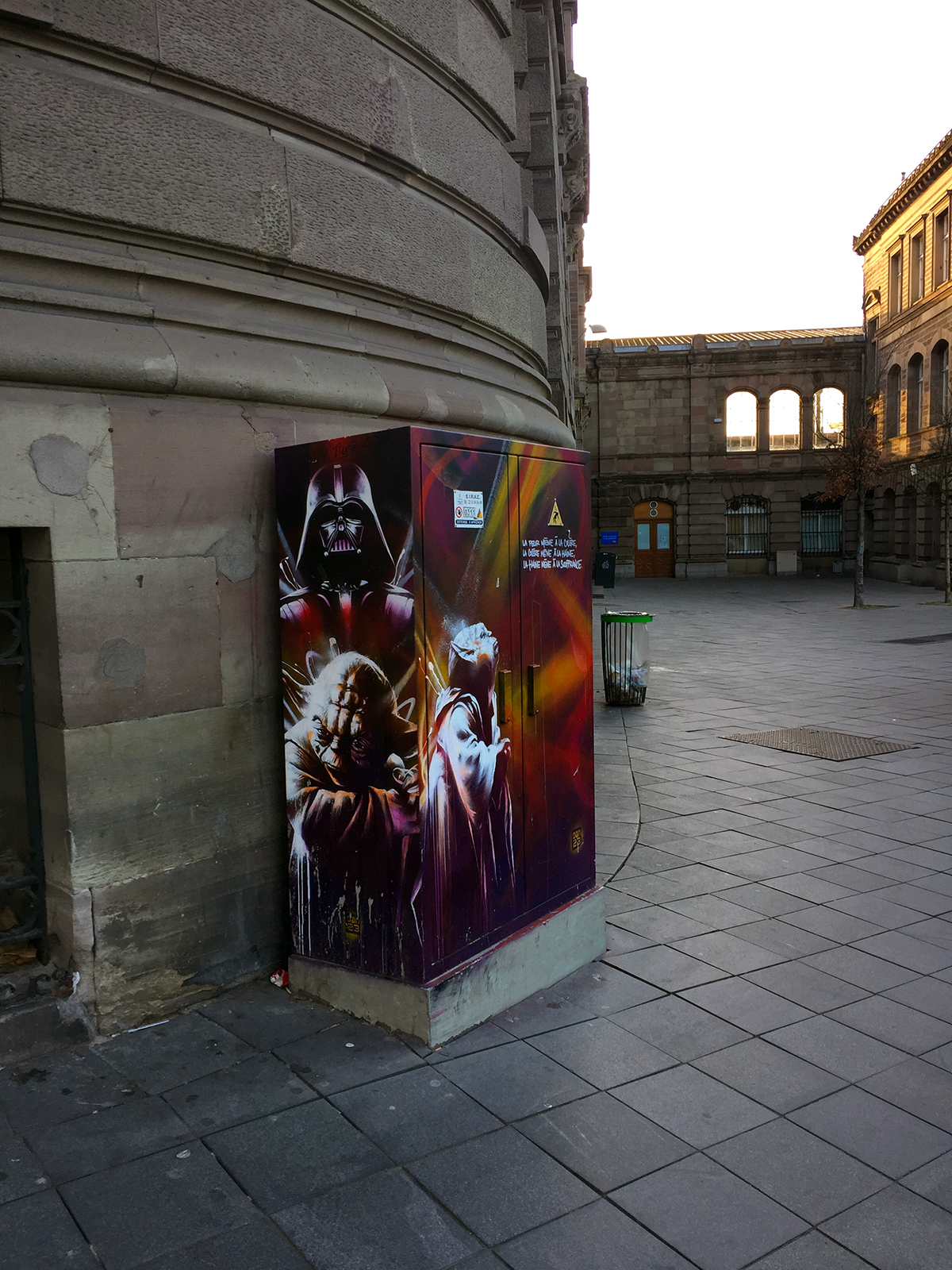 2018/04 - Gare Centrale Ouvre sur le thème de Star War avec Dark Vador et maitre Yoda réalisée sur un coffret SIRAC devant la gare de Strasbourg par l'artiste strasbourgeois Dan23. 1 Place de la Gare, 67000 Strasbourg, France Itinéraire