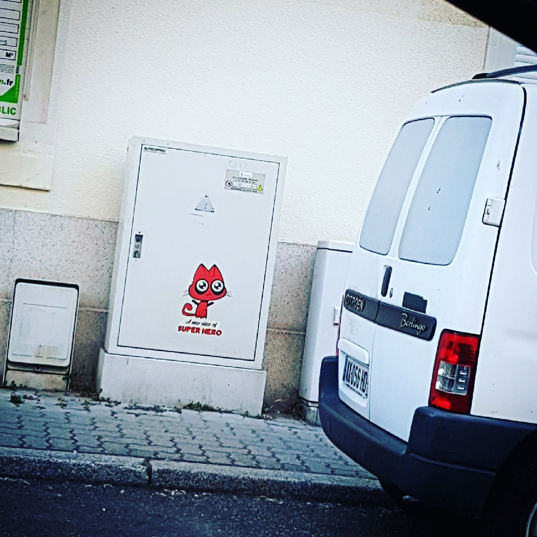2018/07 - Rue de Mulhouse Collage réalisé par l'artiste SupaCat au niveau du 14 rue de Mulhouse au Neudorf. 21 Rue de Mulhouse, 67100 Strasbourg, France Itinéraire