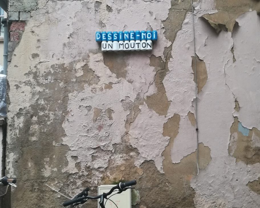 Collage en reliefs dans le centre de Strasbourg.