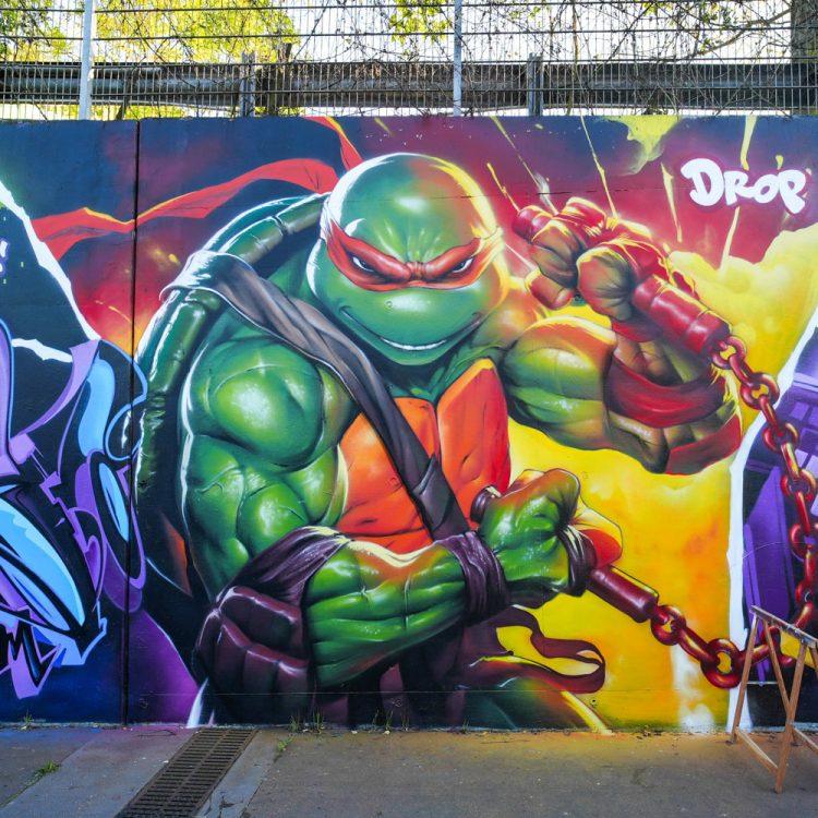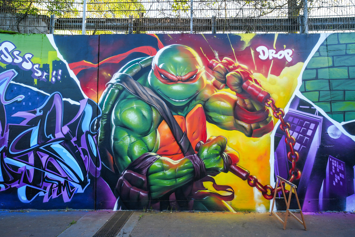 Extrait de la fresque TMNT réalisée sur 2 week-end de septembre 2025 pour célébrer les 25 ans du collectif DownTown