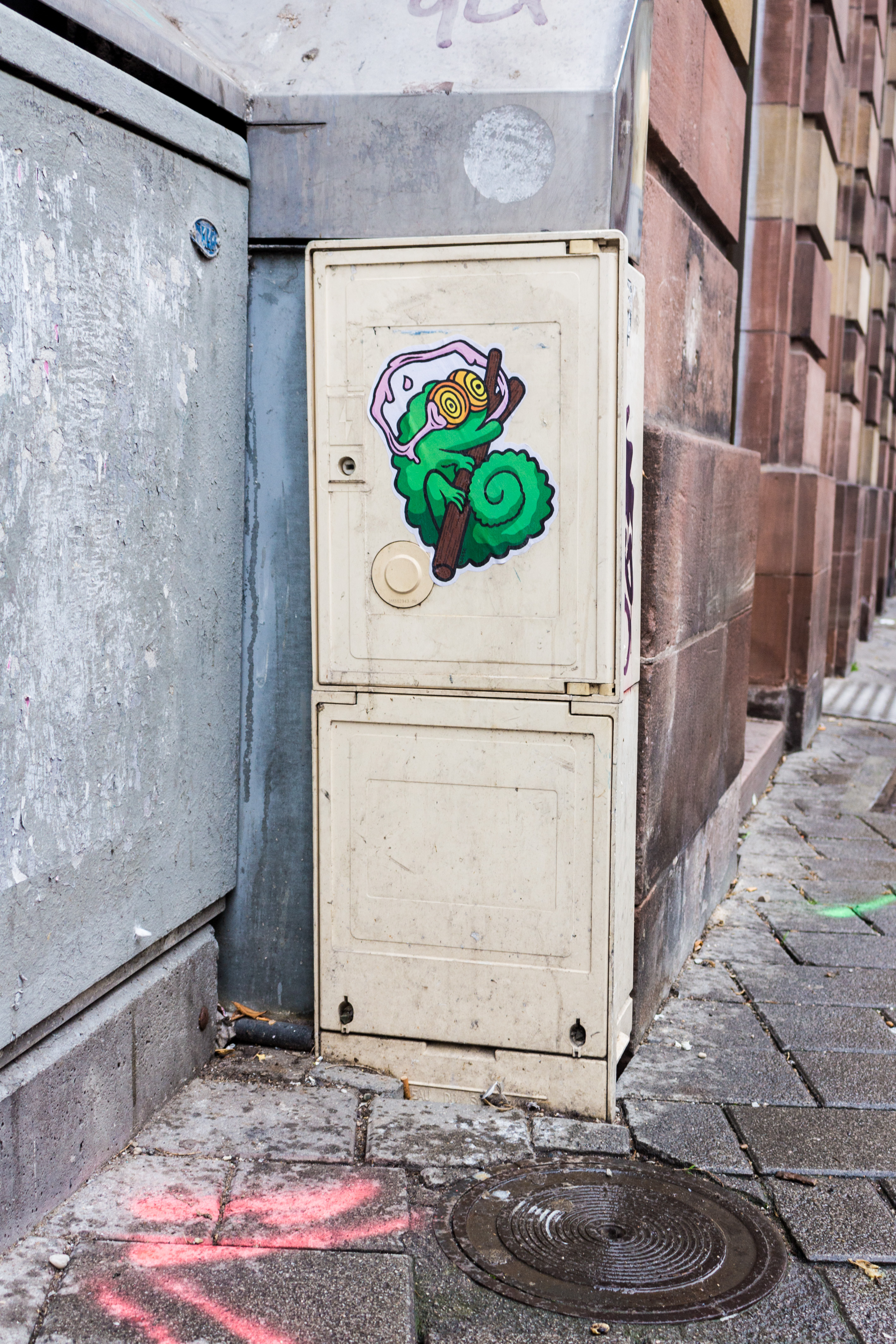 Archives Eddi le caméléon 2019/04 - Rue du Vieux marché aux grains Illustration digitale imprimée et collée sur un boîtier électrique. 6 Rue du Vieux Marché aux Grains, 67000 Strasbourg, France Itinéraire