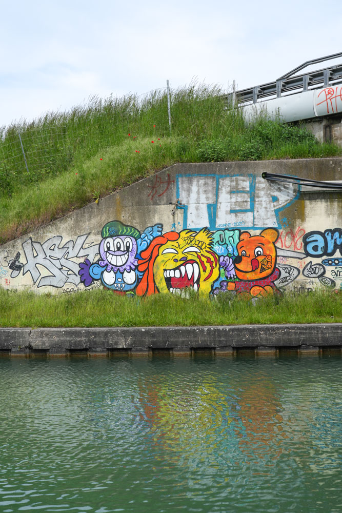 Graff le long du canal de la Marne au Rhin à hauteur de Shopping Promenade