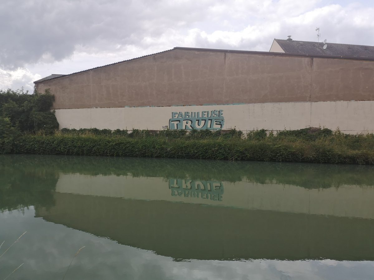 Graff de Fabuleuse Truie réalisé le long du canal de la Marne au Rhin.