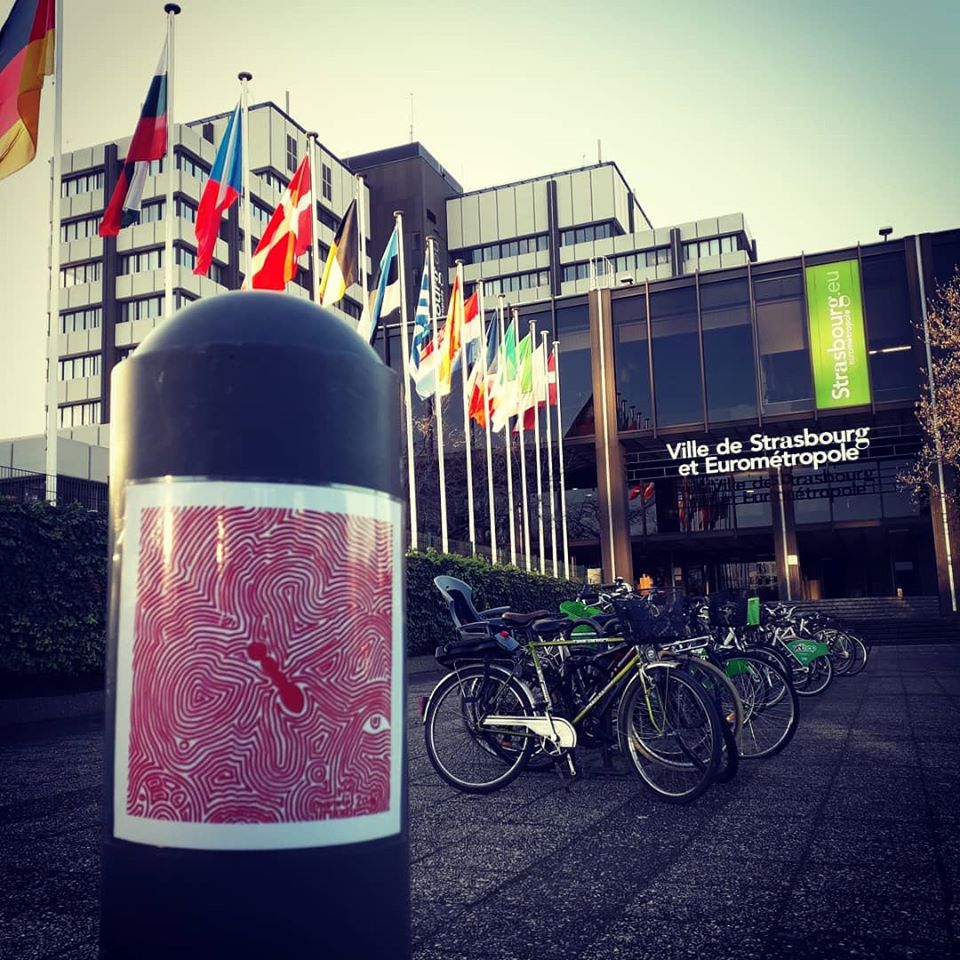 " Chaque jour, je dépose une reproduction de tableau dans la "nature". Les reproductions sont plastifiées et collées sur un poteau, un feu tricolore, un coffret électrique, etc..."