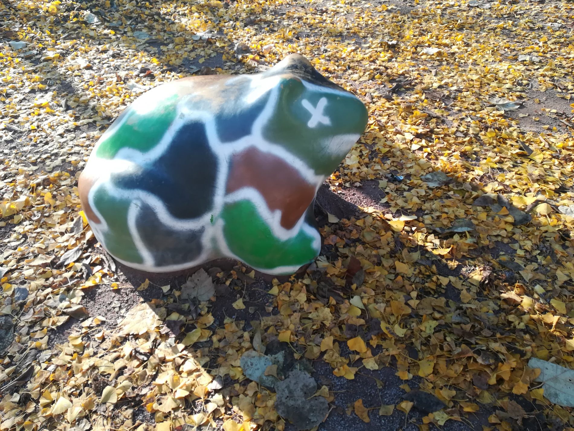 Peinture sur sculpture près de l'église Saint-Pierre-Le-Jeune.