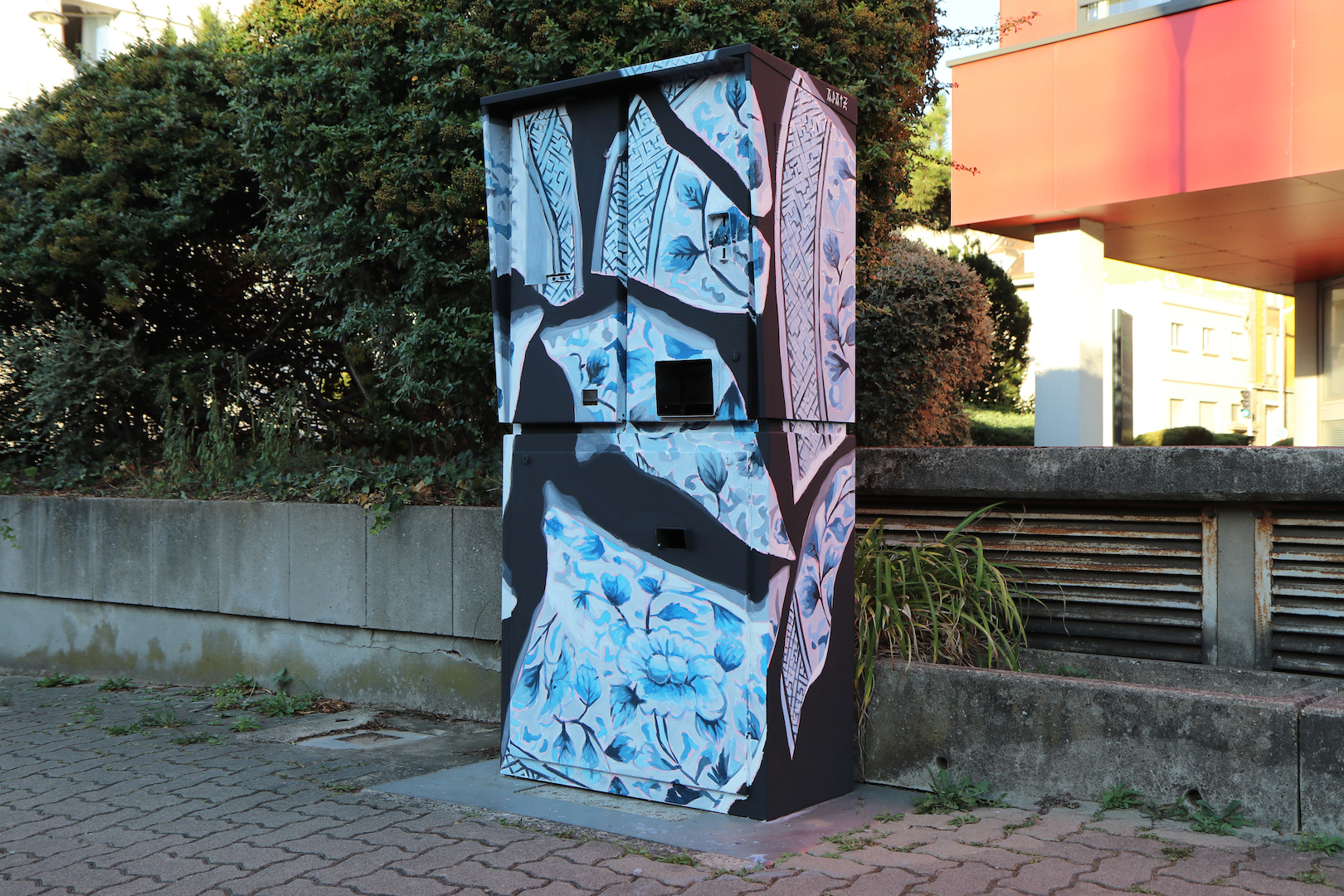 Peinture réalisée par APAIZ sur un boîtier distributeur-échangeur pour l'association Ithaque Asso rue de Sarlouis à Strasbourg.eu Ithaque est un centre de soins, d'accompagnement et de prévention en addictologie centre d'accueil, d'accompagnement à la réduction des risques pour usagers de drogues.