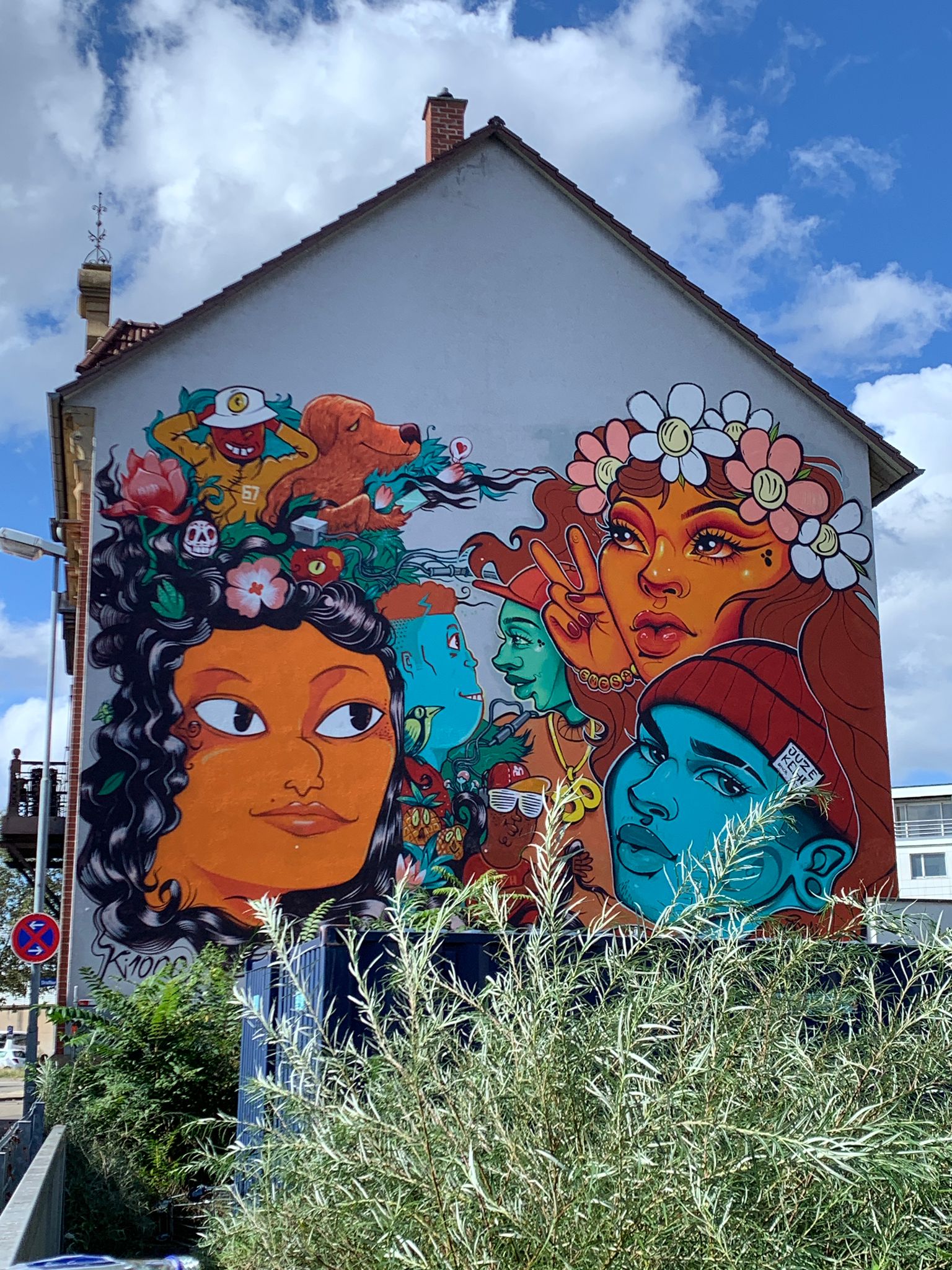 Dans le cadre du 50e anniversaire du centre de jeunesse de Kehl, les artistes K1000 et Emesa ont réalisé ensemble cette fresque murale.