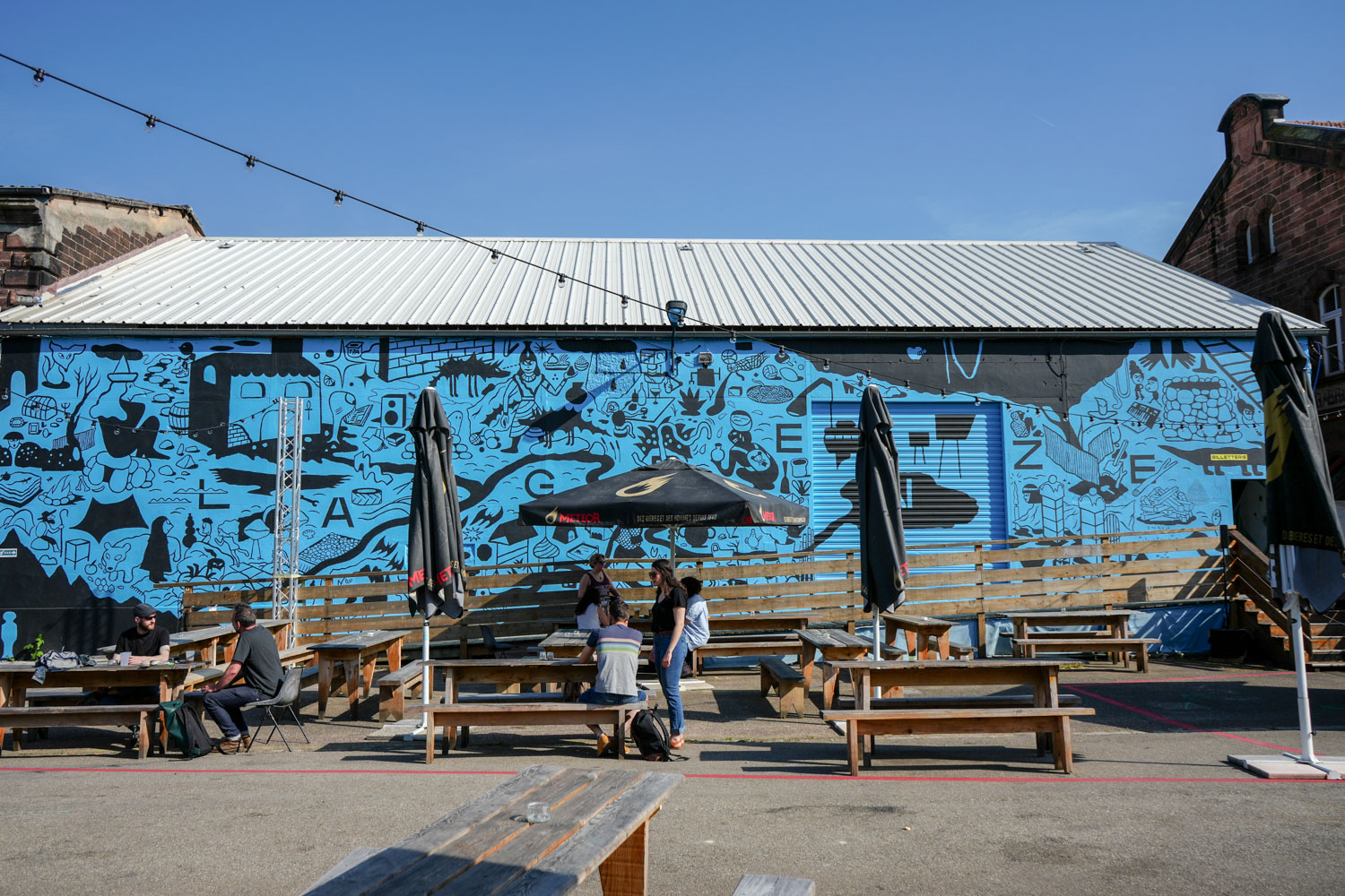 Pour sa rentrée, la Grenze se pare d'une fresque ludique et bicolore réalisée par Basile Bibas 🍺