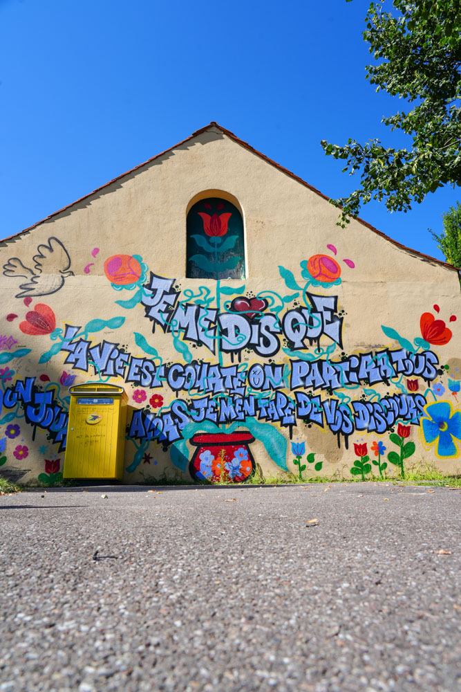 Samedi 2 septembre, les habitants du Neuhof se sont retrouvés au croisement des rues du Stockfeld et de Breitlach pour décorer le pignon d’une maison aux couleurs de la lutte contre les discriminations.