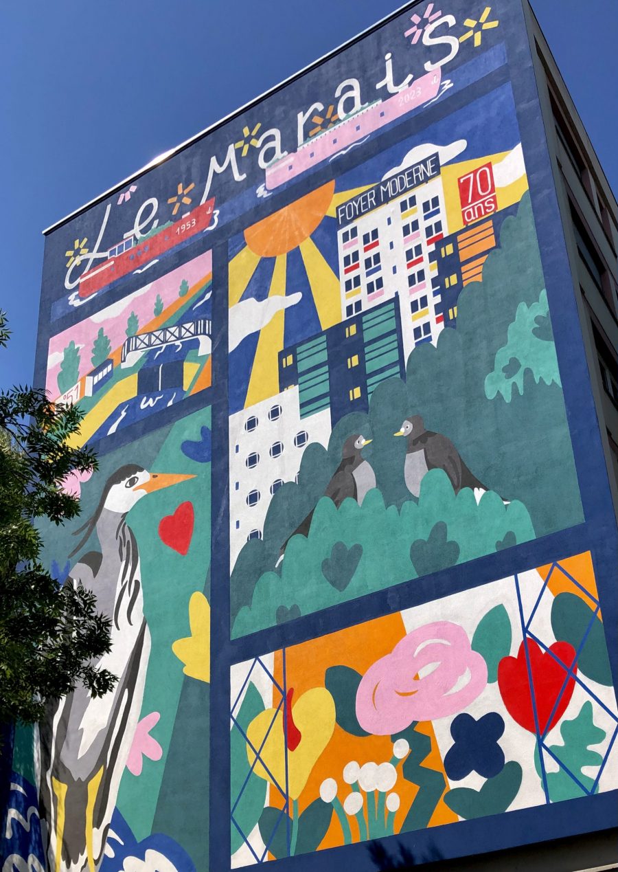 Fresque réalisée dans le cadre des 70 ans du Foyer Moderne et du COLORS Urban Art Festival 2023