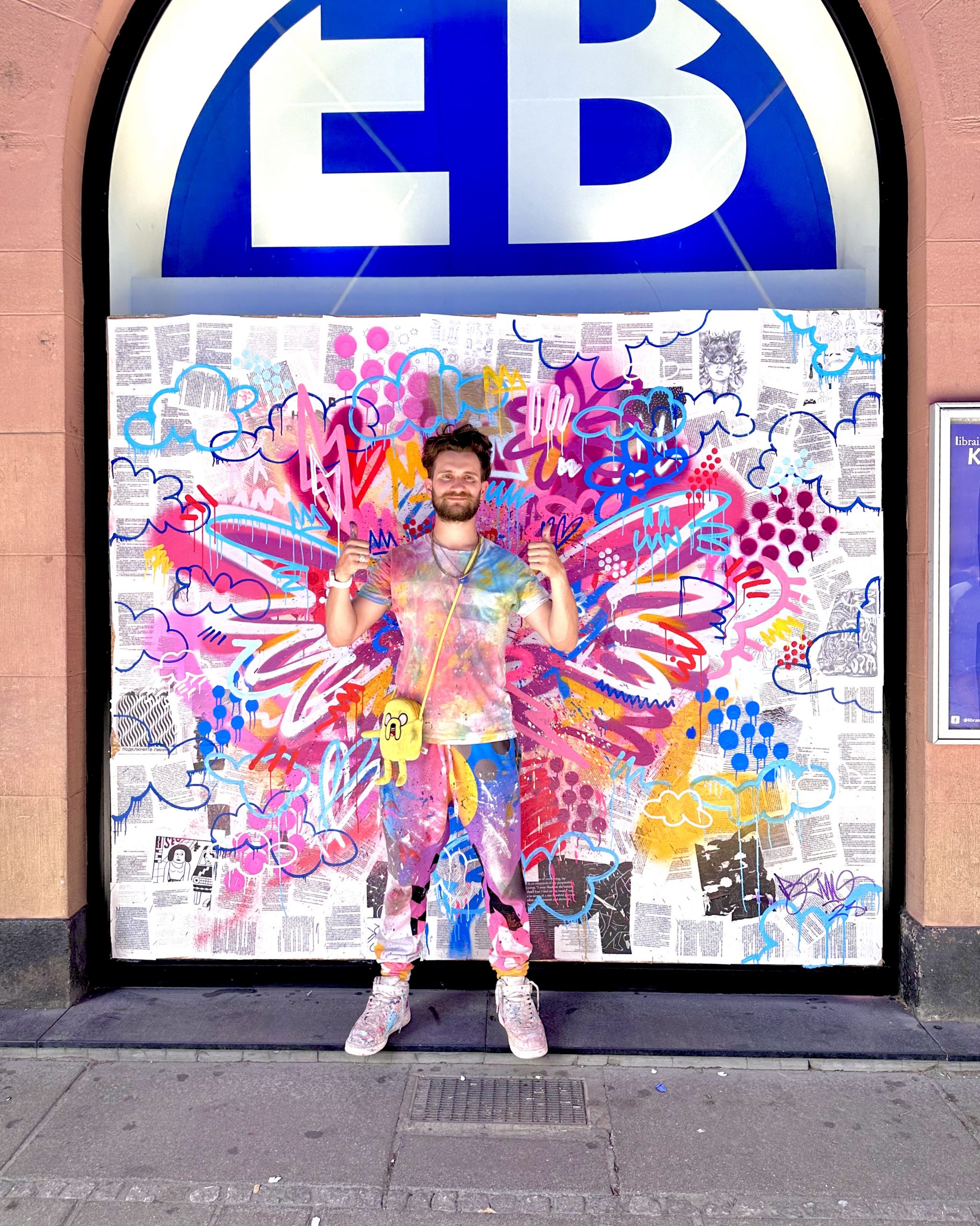 Archives Les livres donnent des ailes 2023/07 - Librairie Kléber Suite aux émeutes, la librairie Kléber s’est vu cassé l’une de ses vitrines. Après avoir caché temporairement avec une planche de bois, elle a fait appel a l’artiste Brunograffer pour décorer avec des pages de livres collées ainsi que de la peinture. Vous pouvez vous prendre en photos devants et obtenir ainsi des ailes ! Librairie Kléber, Rue des Francs-Bourgeois, Strasbourg, France Itinéraire