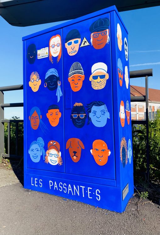 "Ce coffret est situé avenue du Rhin, sur un axe routier qui voit passer quarante mille véhicules par jour. J'ai eu envie de rendre hommage aux personnes qui circulent malgré tout à pied ou à vélo dans cet endroit inhospitalier. Tous les visages sont ceux des passants et passantes, de tous styles et couleurs, qui se promenaient à proximité du boîtier le 27 avril 2025"