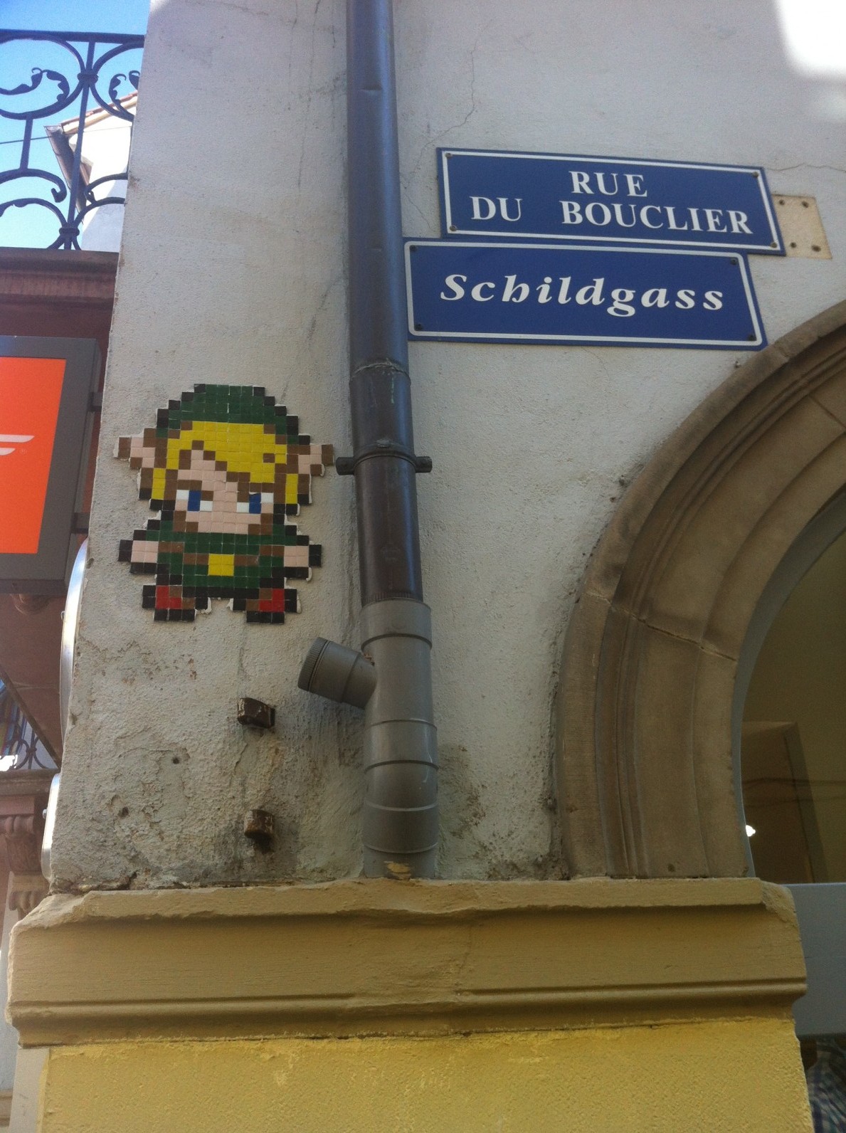 2014/06 - Rue du bouclier Mosaique représentant le personnage Link
