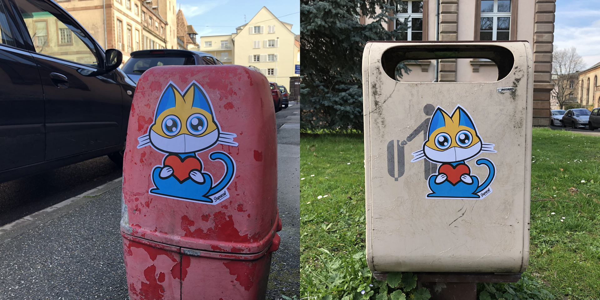 2020/03-Dans plusieurs rues à l'intérieur du NHCLOVE for the Med Team est un chat collé par Supacat à plusieurs endroits du Nouvel Hôpital Civil (NHC) à Strasbourg et qui est dédicacé à tous les héros en blouse blanche. Un grand merci à eux de mettre leurs vies entre parenthèses pour soigner et sauver la vie des autres.NHC - Nouvel Hôpital Civil, Rue de la Porte de l'Hôpital, Strasbourg, France