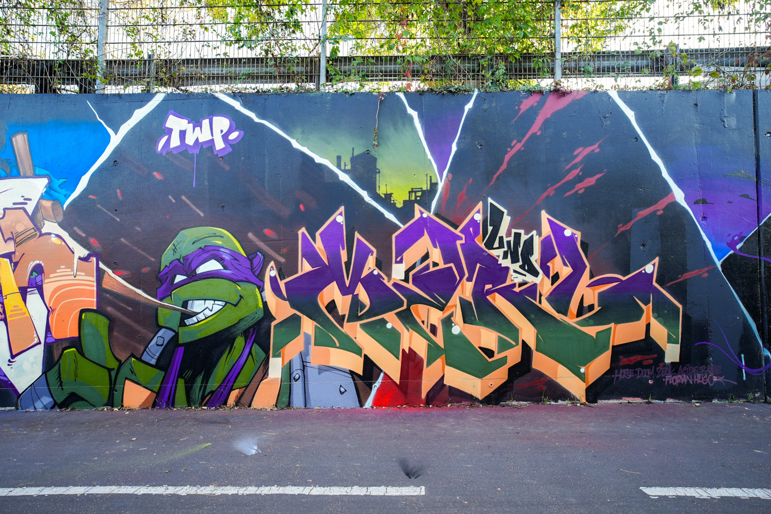 Extrait de la fresque TMNT réalisée sur 2 week-end de septembre 2025 pour célébrer les 25 ans du collectif DownTown