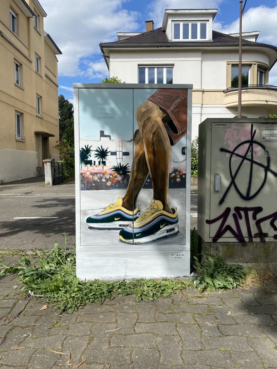 "Parti d'une photo d'un ami à Miami, j'ai voulu faire une petite fenêtre sur rue avec les baskets au premier plan et le fond flou pour le contraste.