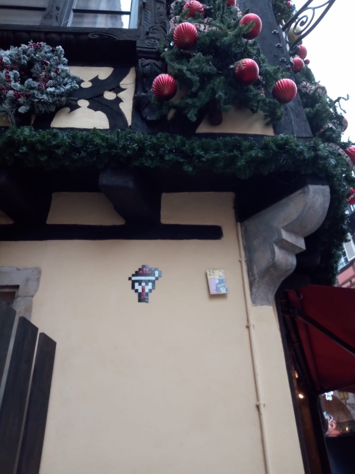 2018/11 - Rue des dentelles Mosaïque de Stork représentant une cigogne Père Noël . 11 Rue des Dentelles, 67000 Strasbourg, France Itinéraire
