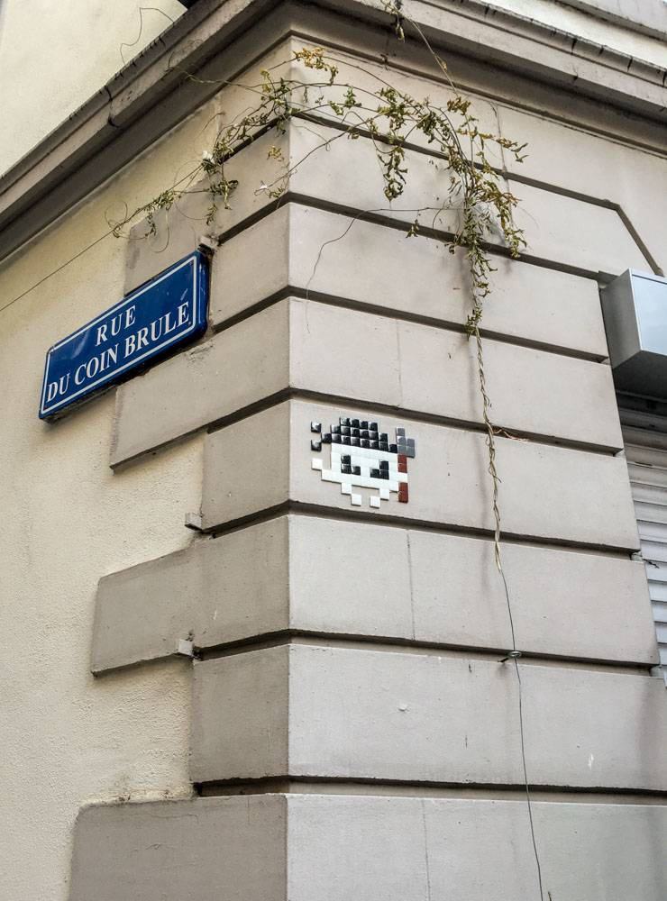 Mosaïque à l'angle de la rue du coin brûlé et de la rue de la grange