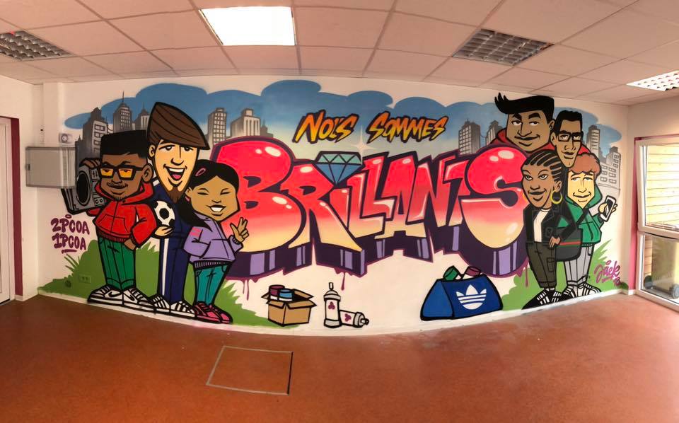 Graffiti Nous sommes brillants Lycée Aristide Briand Fresque réalisée par Jaek El Diablo et les élèves du lycée professionnel Aristide Briand à Schiltigheim. 12 Rue du Barrage, 67300 Schiltigheim, France Itinéraire