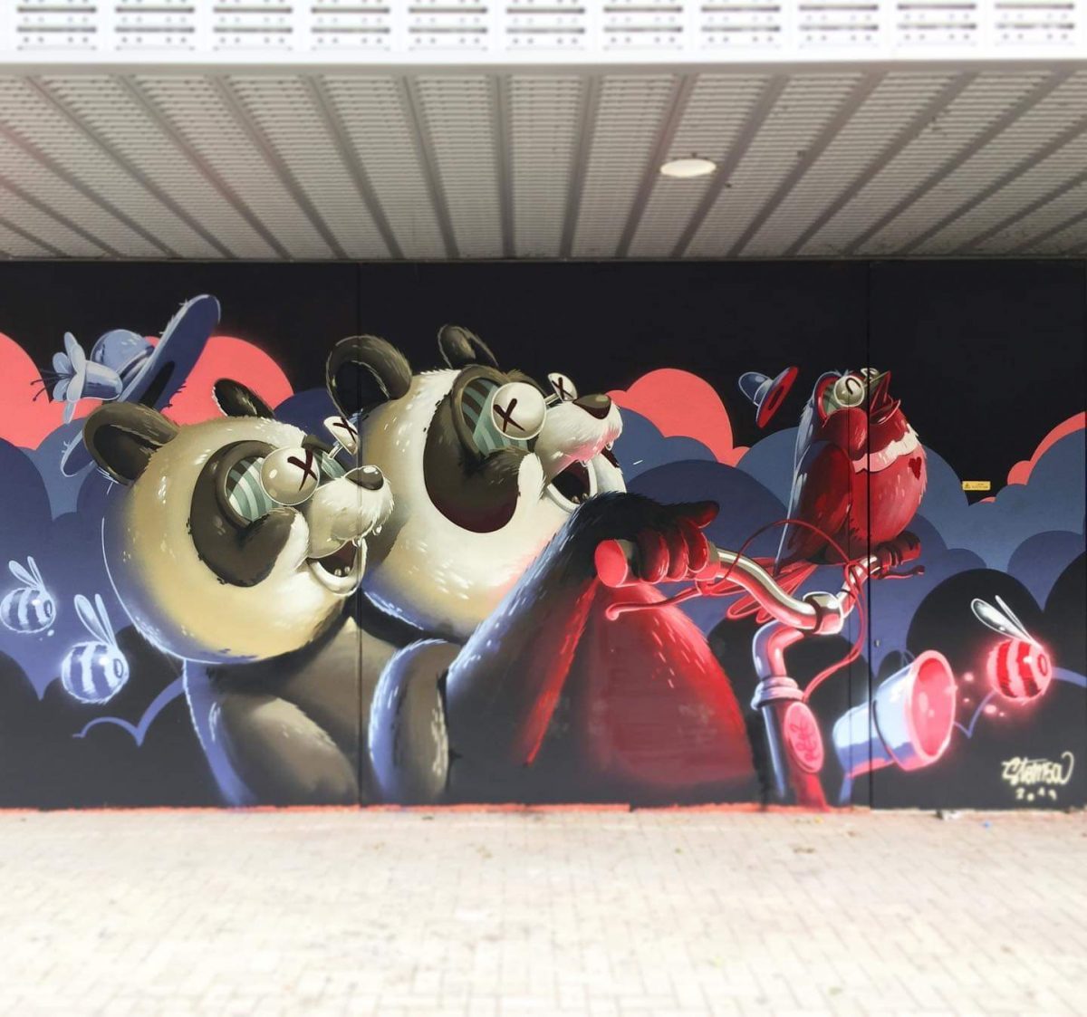 Mur réalisé par deux artistes Som500 et Friture de Style au gymnase de la Rotonde.
