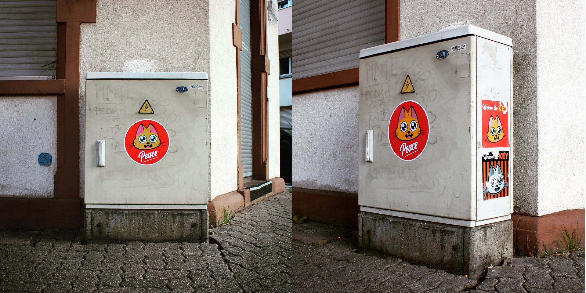 2018/10 - Café Grognon Collage réalisé par l'artiste SupaCat devant le Café Grognon à Strasbourg. 2 Avenue Léon Dacheux, 67100 Strasbourg, France Itinéraire