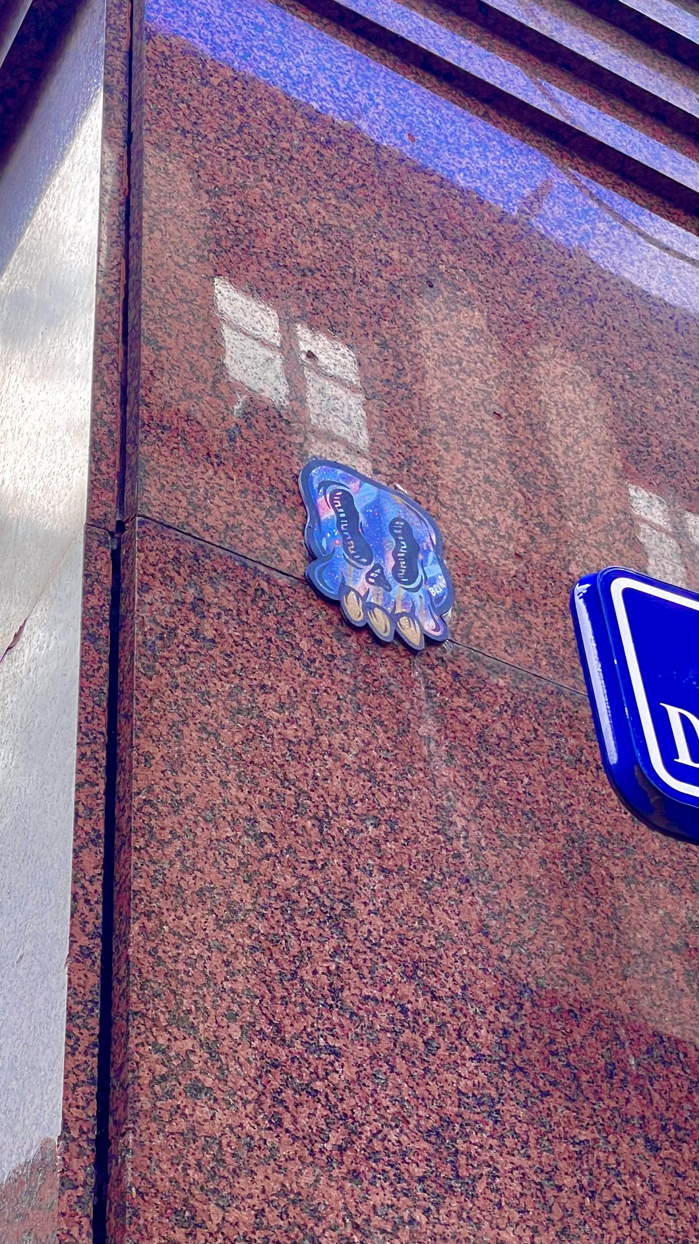 Collage Petit crâne 2022/09 - Rue des Tonneliers Peinture à l’acrylique sur bois, représentant un petit crâne coloré. 29 Rue des Tonneliers, 67000 Strasbourg, France Itinéraire