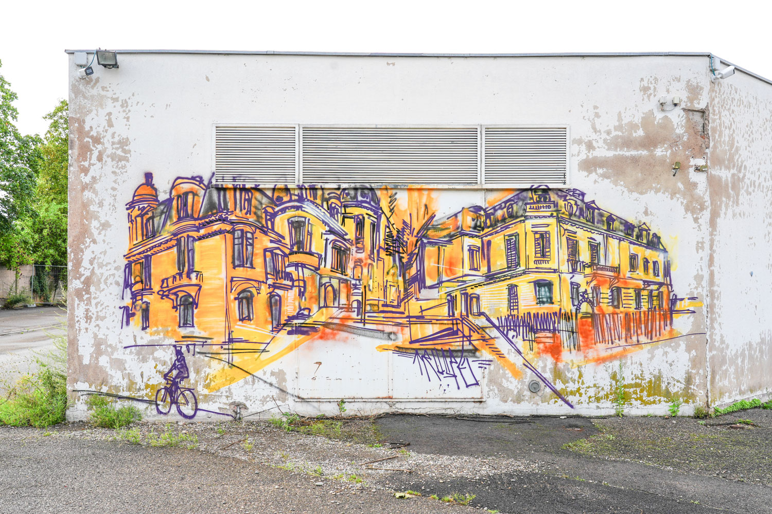 Oeuvre réalisée en été 2023 à proximité du Rhénus Sport / au fond du site Archipel 2