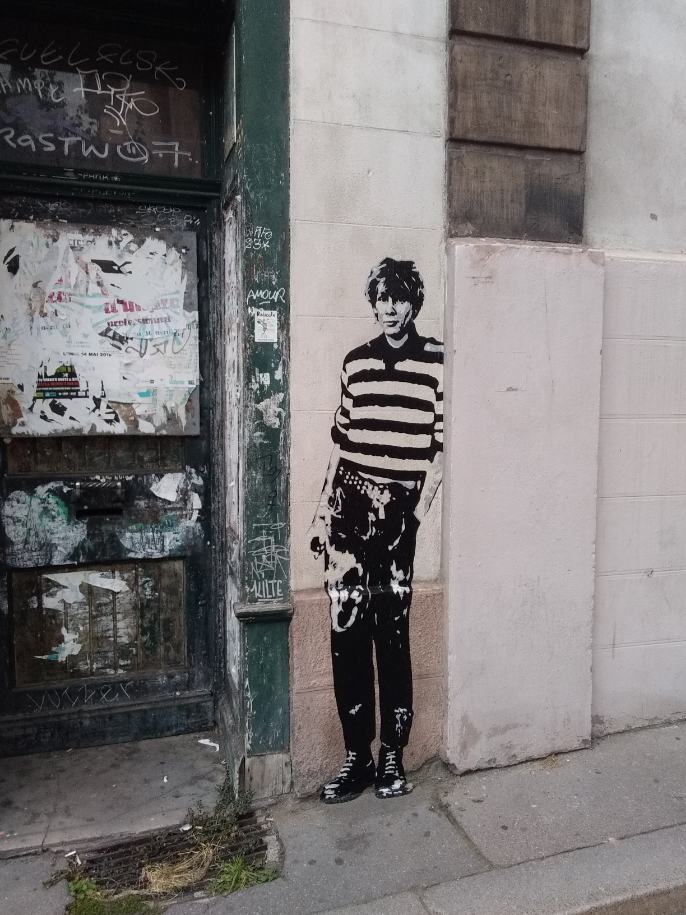 Collage (Acrylique sur papier) de Poch représentant Gilles Bertin et réalisé dans le centre de Strasbourg, près du bar "les aviateurs". L'artiste a réalisé cette oeuvre à l'occasion de l'événement "25 ans dans le Punk ça se fête" qui s'est déroulé à Strasbourg le 29 septembre.