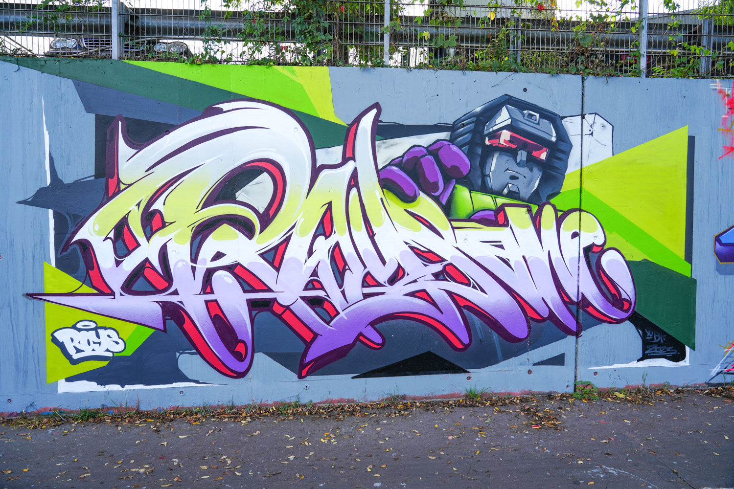 Mur réalisé lors d'une jam organisée en septembre 2023 par le collectif Downtown rue de la Kaltau sur le thème des Transformers