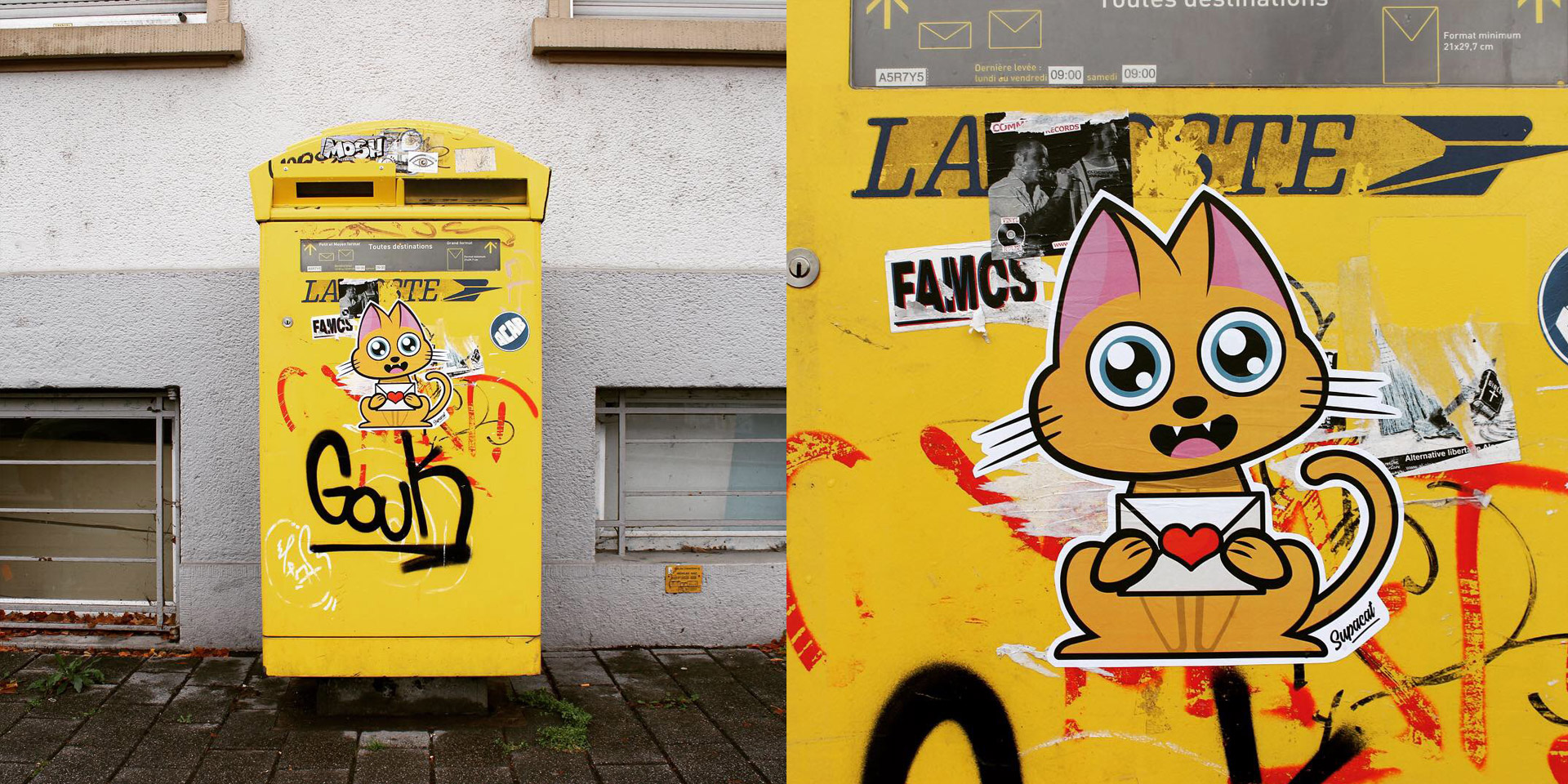 2018/10 - Av Jean Jaurès Collage réalisé par l'artiste SupaCat sur une boîte aux lettres, 4 Avenue Jean Jaurès à Strasbourg. 2 Avenue Jean Jaurès, 67100 Strasbourg, France Itinéraire