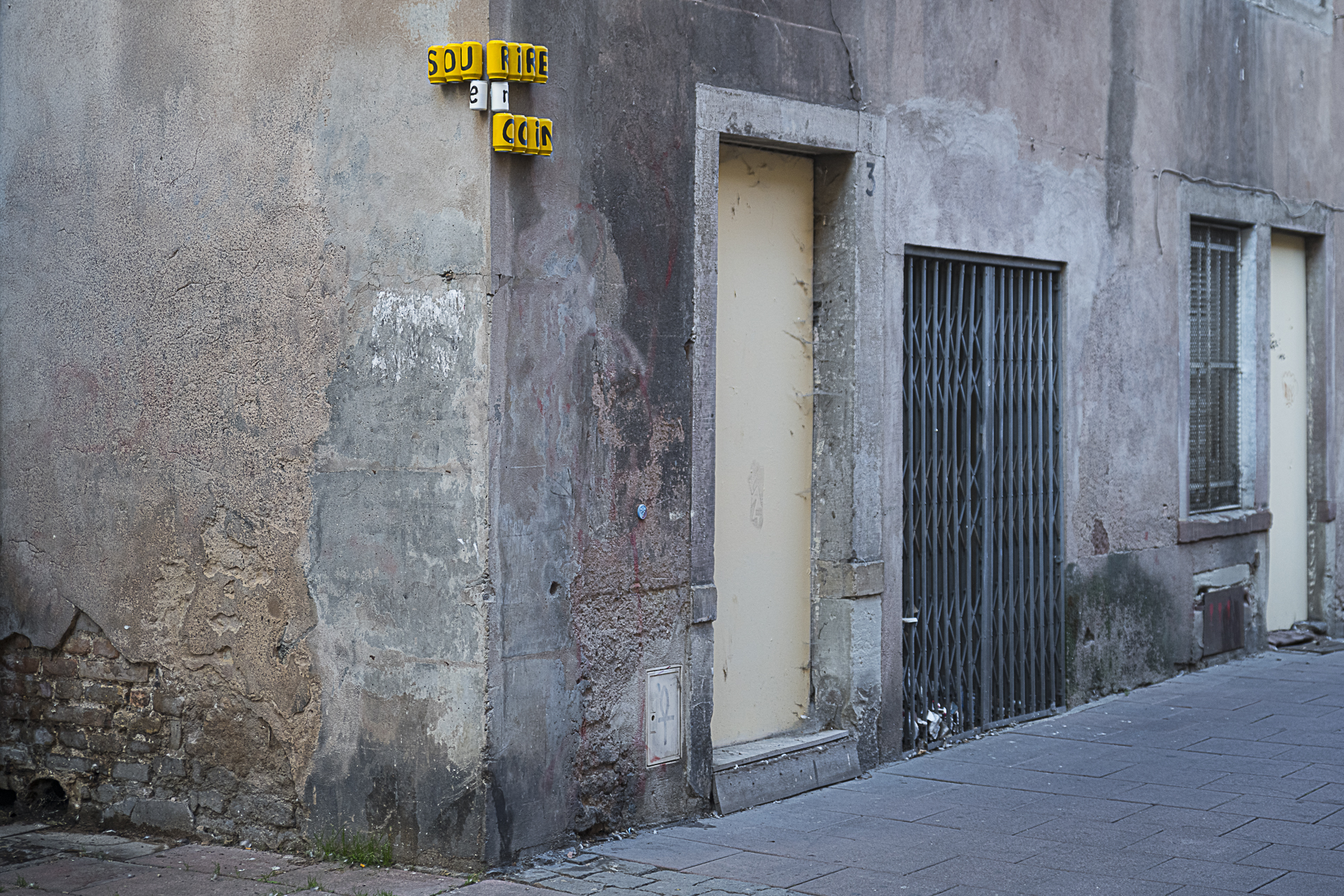2001/10 - Rue Ste Hélène Assemblage de cannettes peintes fixées sur un coin saillant de murs. 1 Rue Sainte-Hélène, 67000 Strasbourg, France Itinéraire