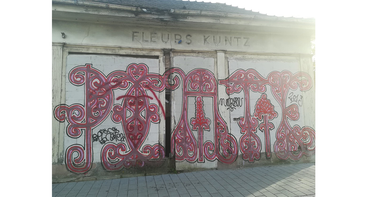 Oeuvre réalisée sur une ancienne devanture de fleuriste route des romains.