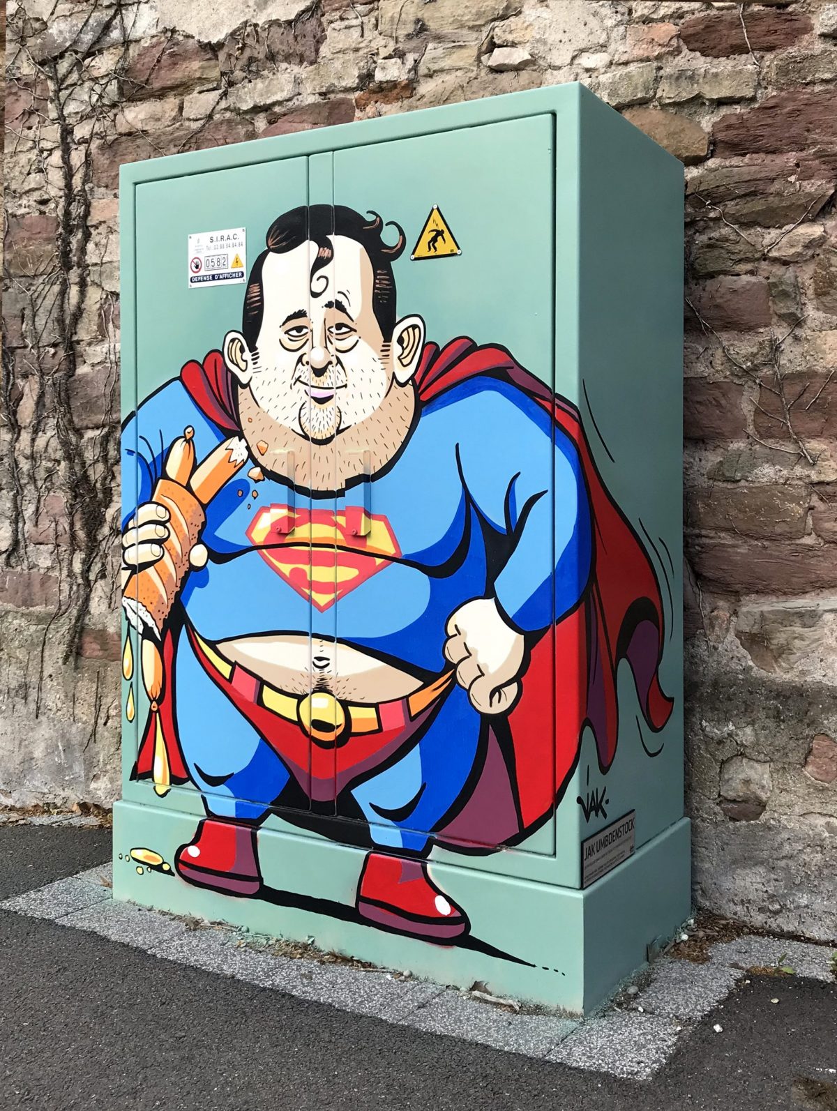 " Certains y verront une dénonciation de la malbouffe, d'autres simplement la représentation d'un super héros en Alsace ayant abusé de la gastronomie locale (un peu comme le Flash de la rue des Bateliers) ... À vous de choisir "