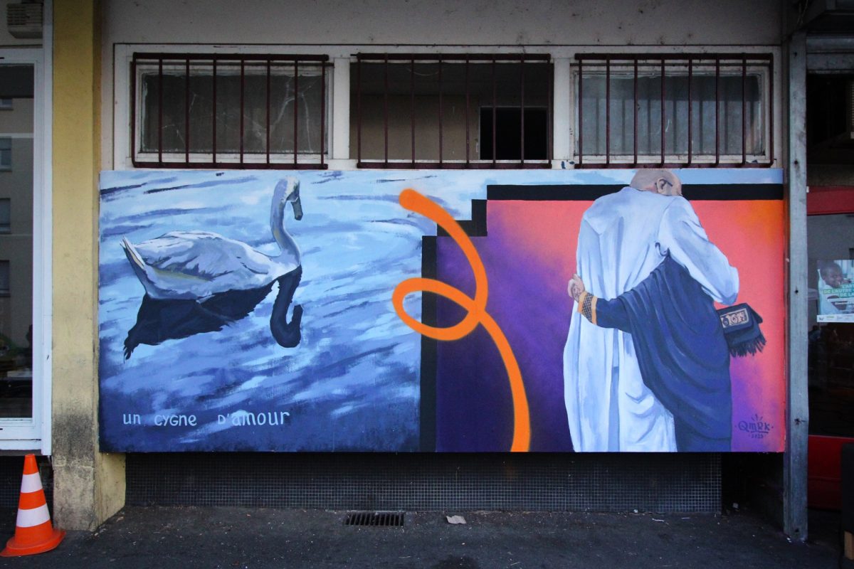 "Oeuvre réalisée durant l’événement " L'Art est de l'autre côté de la rue " à la Meinau. C'était une super ambiance, merci à Compagnie Lu² pour l'organisation et le sourire. Ma peinture s’appelle " Un Cygne d'Amour " Elle as été réalisée d'après des photos prisent dans le quartier de la Meinau."