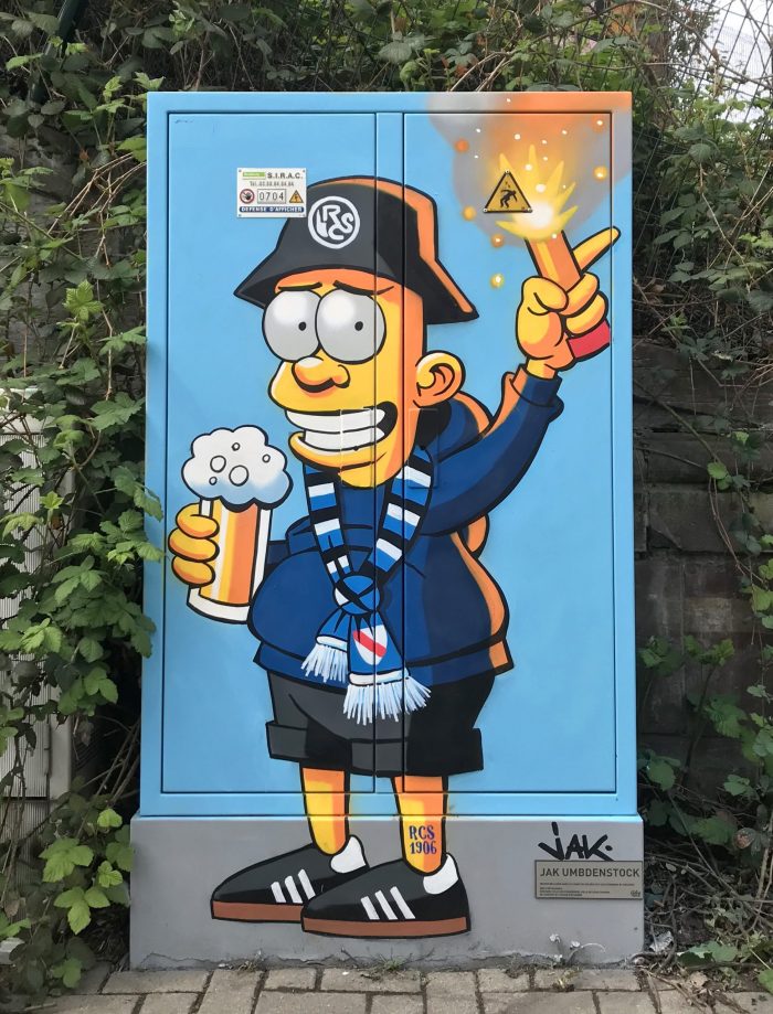 "Toujours dans la même thématique des personnages issus de la Pop culture, détournés et revisités à ma sauce, j'ai voulu ici rendre hommage à tous les amoureux du Racing."