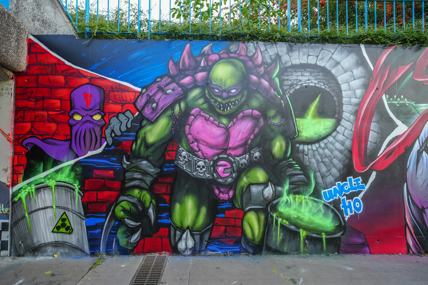 Extrait de la fresque TMNT réalisée sur 2 week-end de septembre 2025 pour célébrer les 25 ans du collectif DownTown